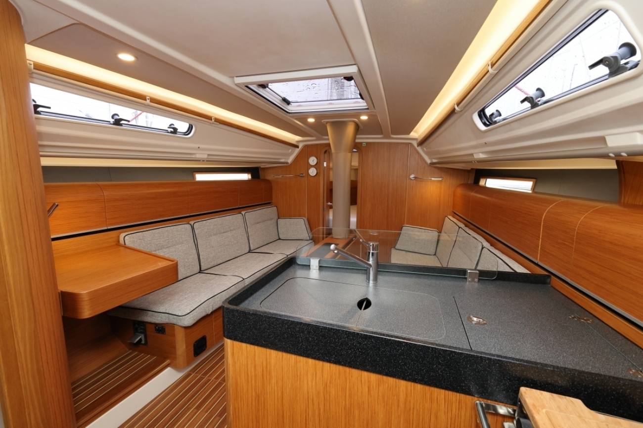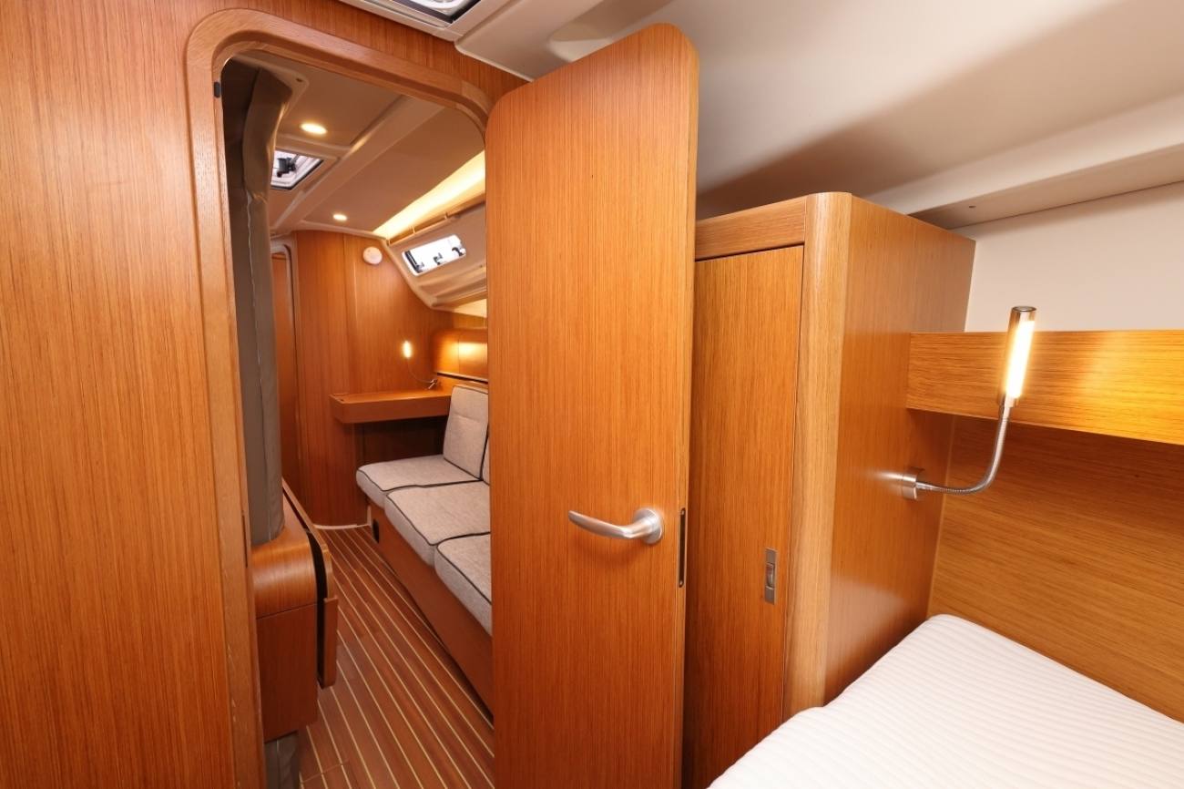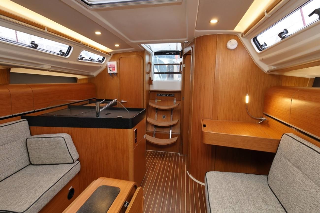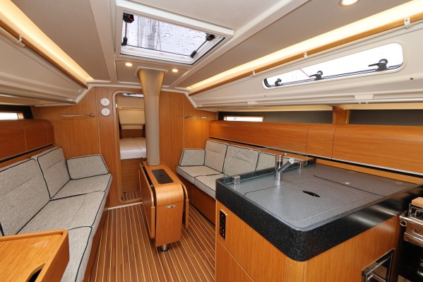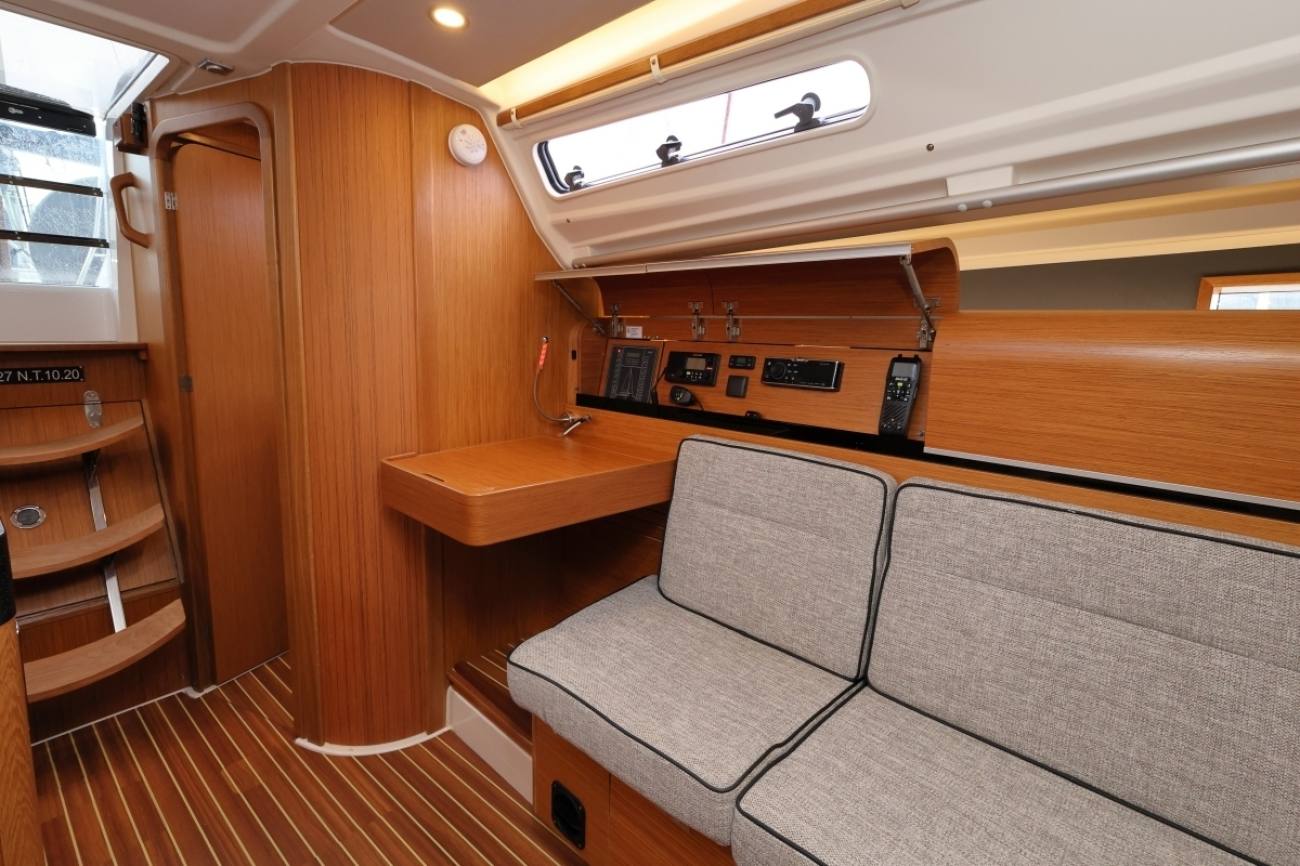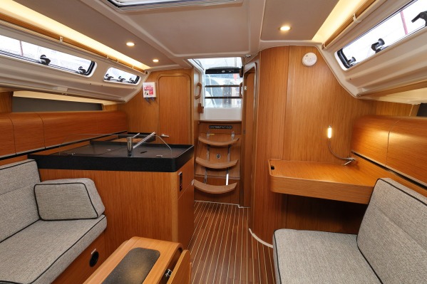 This Dehler 34 has both the upgraded teak interior woodwork as well as the classic teak and holly striped flooring, giving a contemporary and timeless finish to the accommodation.