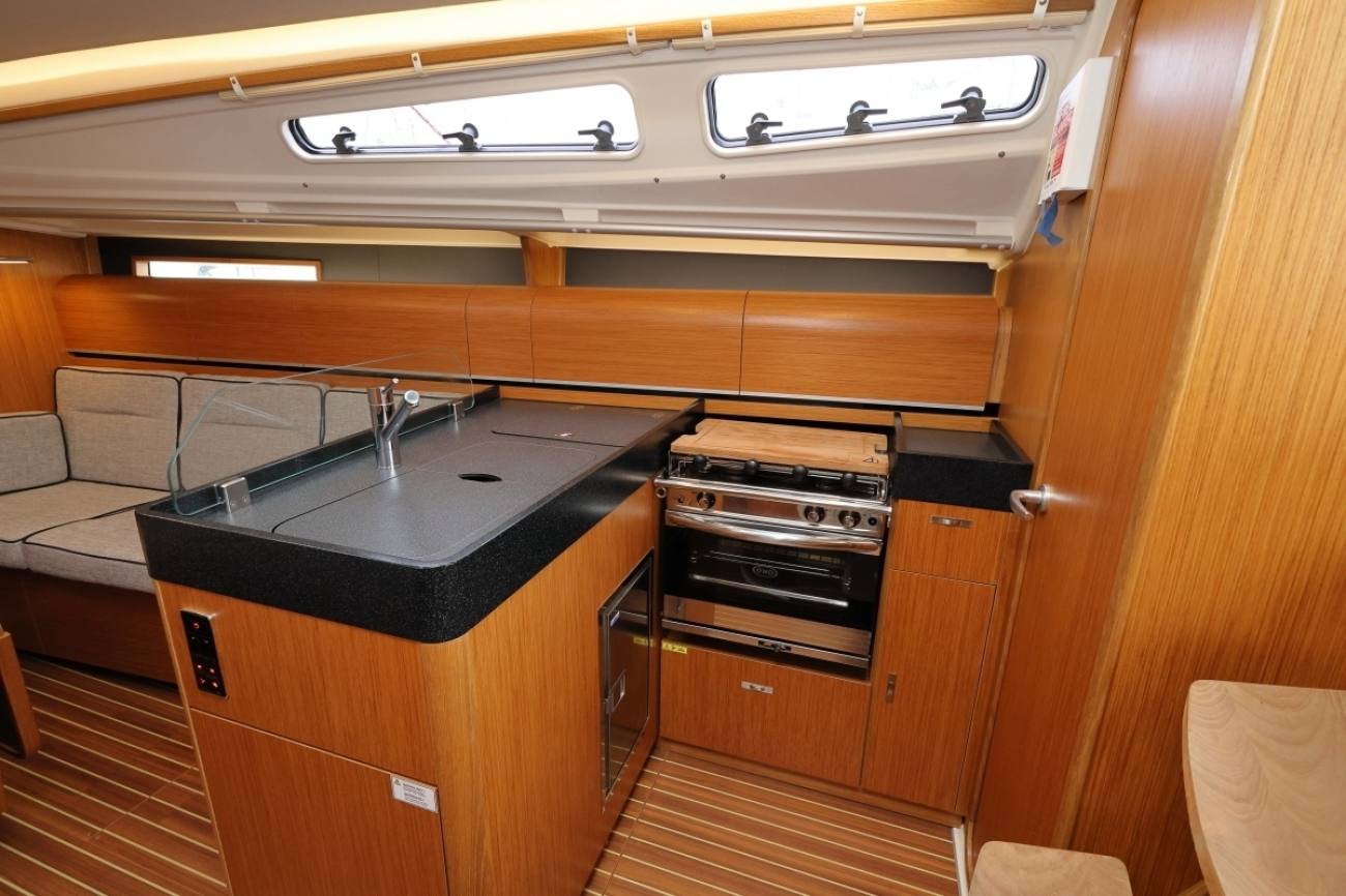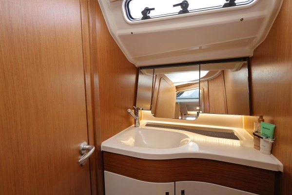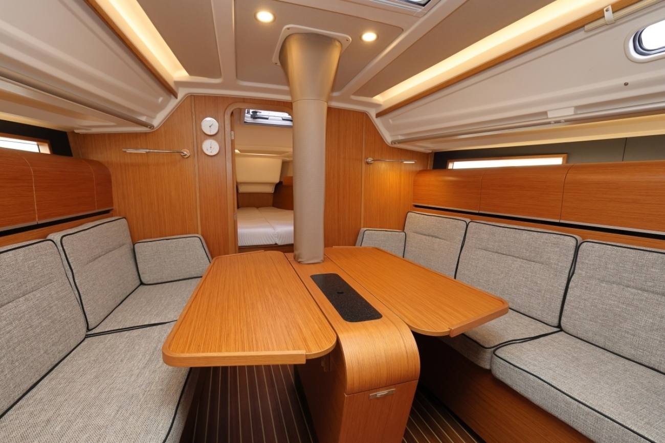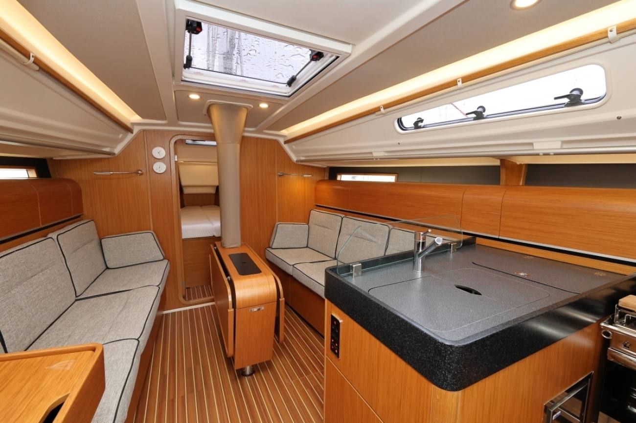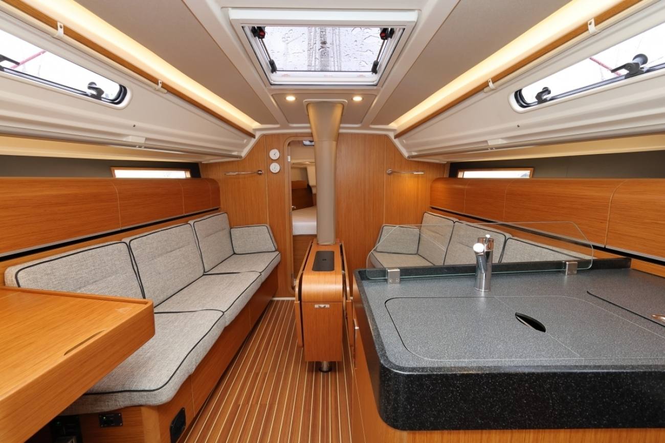 This Dehler 34 has both the upgraded teak interior woodwork as well as the classic teak and holly striped flooring, giving a contemporary and timeless finish to the accommodation.