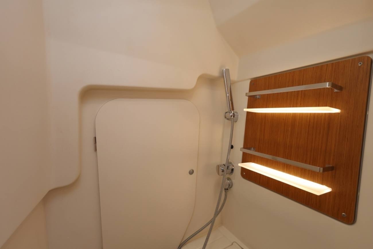 - Large cockpit locker on port side, which has been fitted out very nicely for storage, including internal outboard bracket and folding bike space with retaining straps