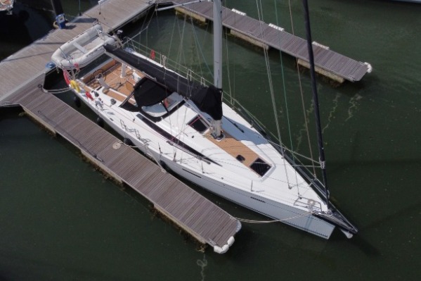 Sunbeat VI, A Dehler 42 is available for sale now. She is ashore at Hamble Point on the MS&P display giving easy access and viewing.