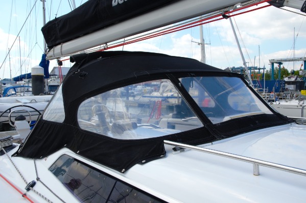 - Upgraded sprayhood with leather clad grab rail, central window opens and additional windows in the wings (black).