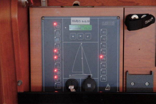 - 12v ships system, control panel with circuit breakers, 12v socket, tank monitors - water, fuel, plus battery monitor