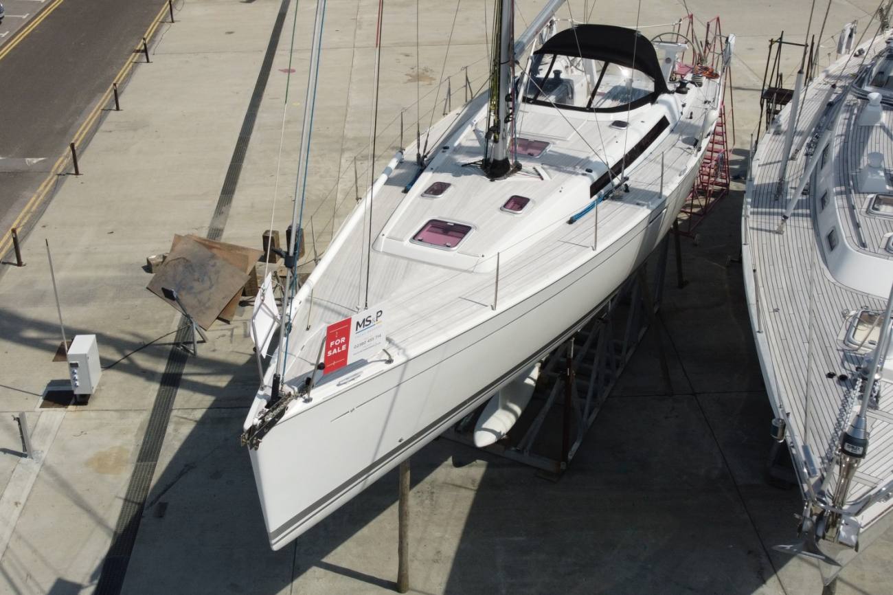 This model is the open transom version with open stern, two steering positions and a folding swim platform. With only two owners from new, she is extensively equipped with teak decks everywhere, light oak interior, electric winches, retractable bow thruster, upgraded Volvo Penta D2-55 and Harken deck fittings. She had a new Sparcraft mast in 2019.