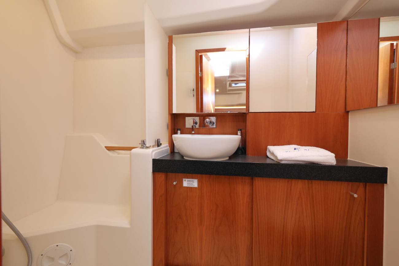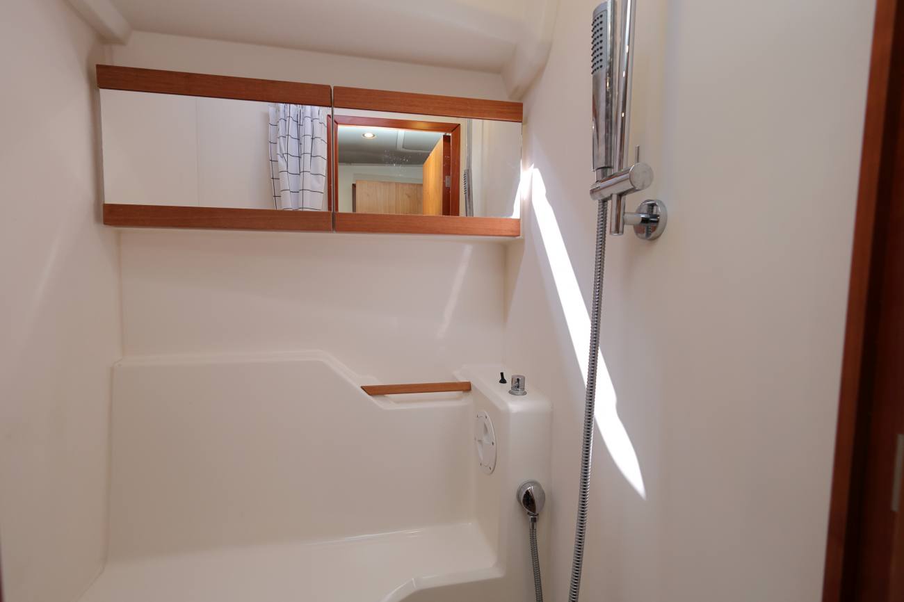 - Shower cubicle to starboard.