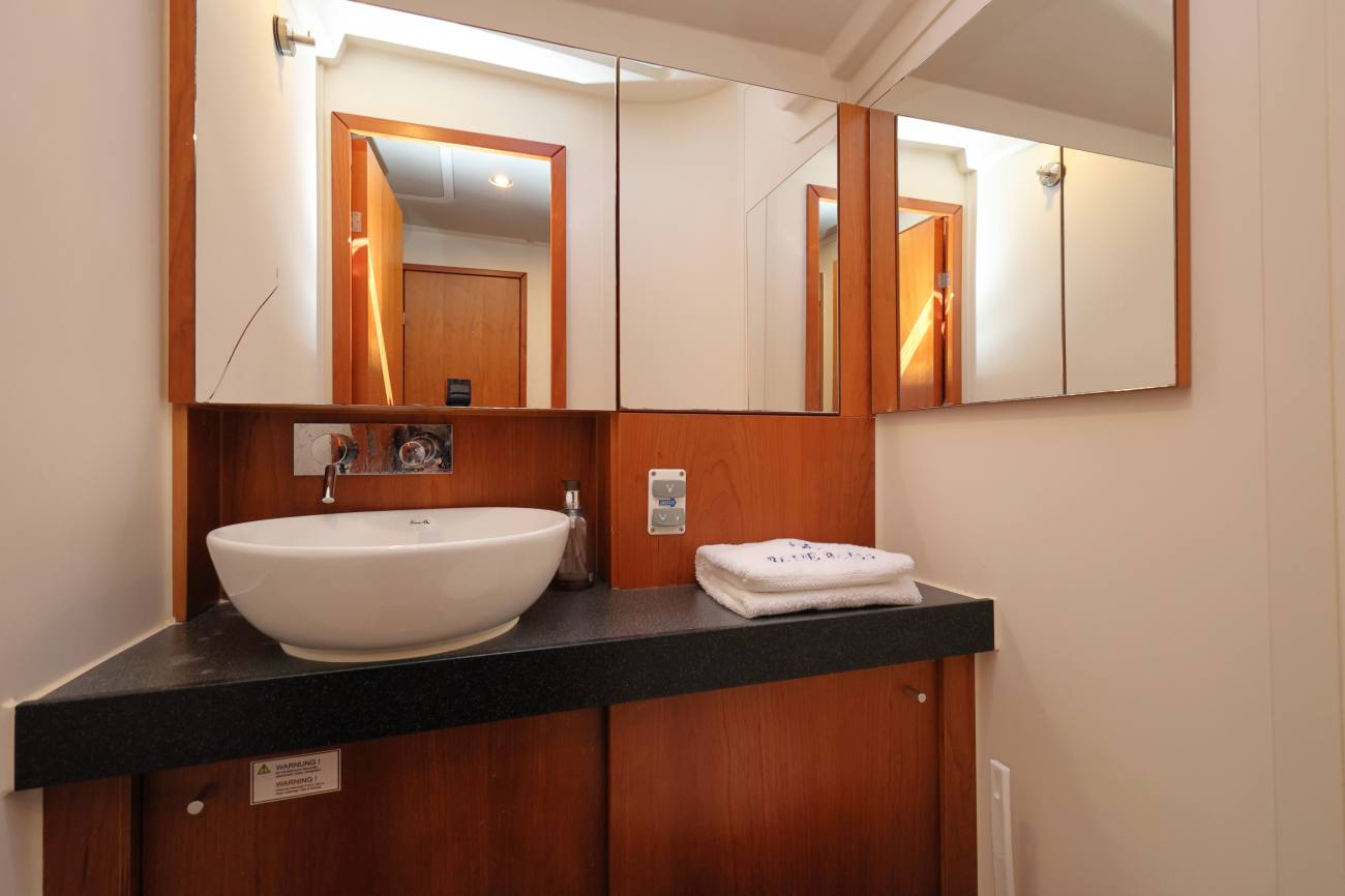 - Heads with counter top wash basin to port.