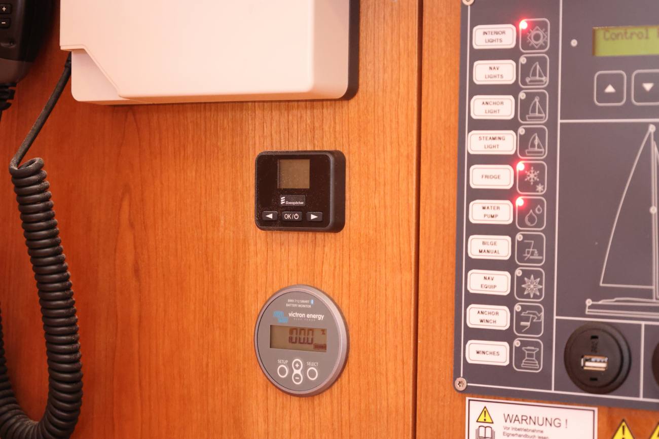 - 12v ships electrics with distribution panel at the chart table.