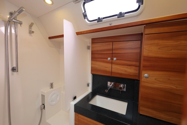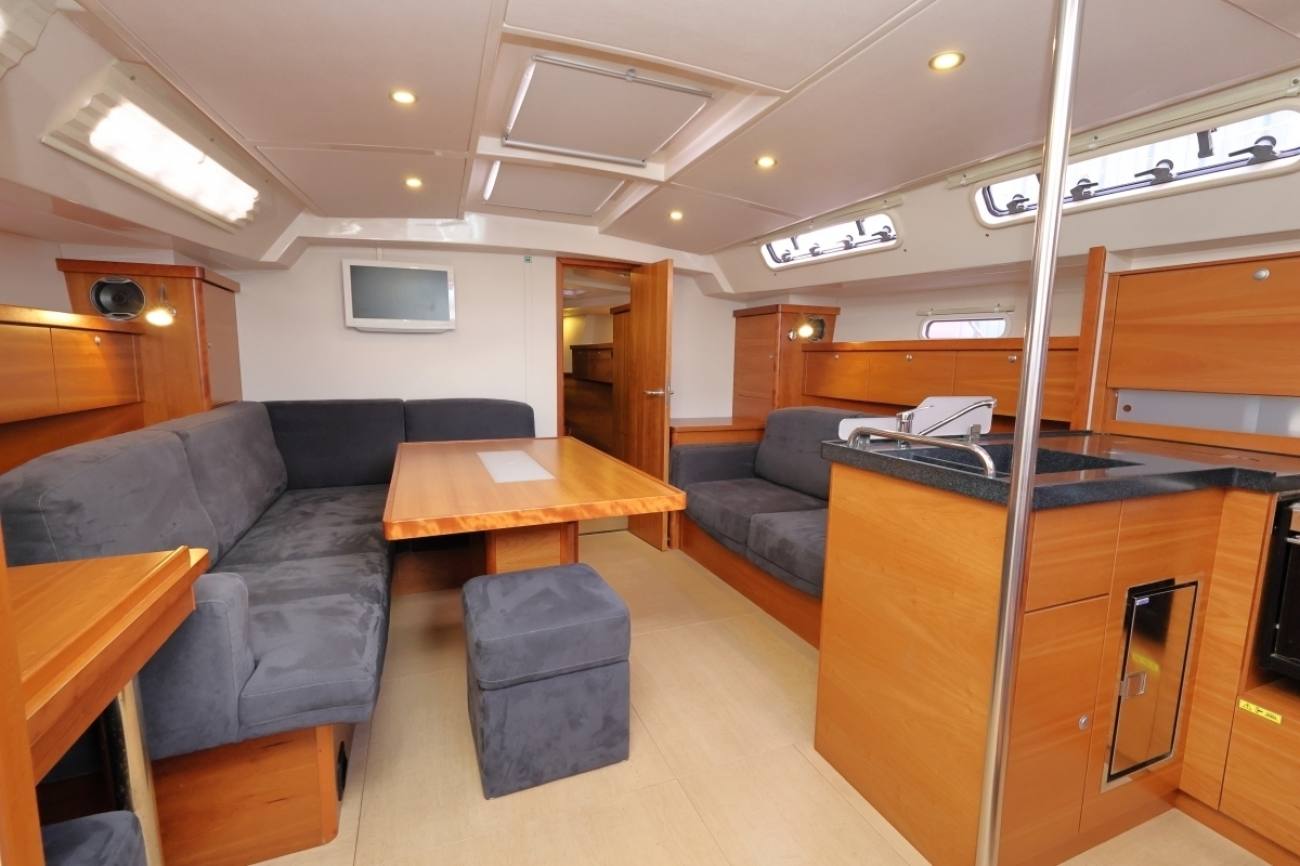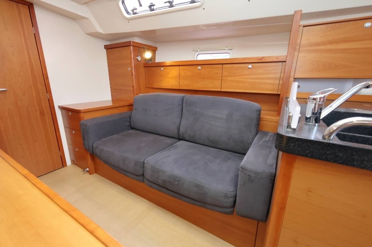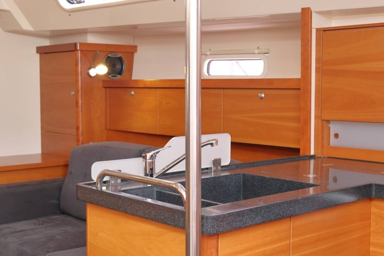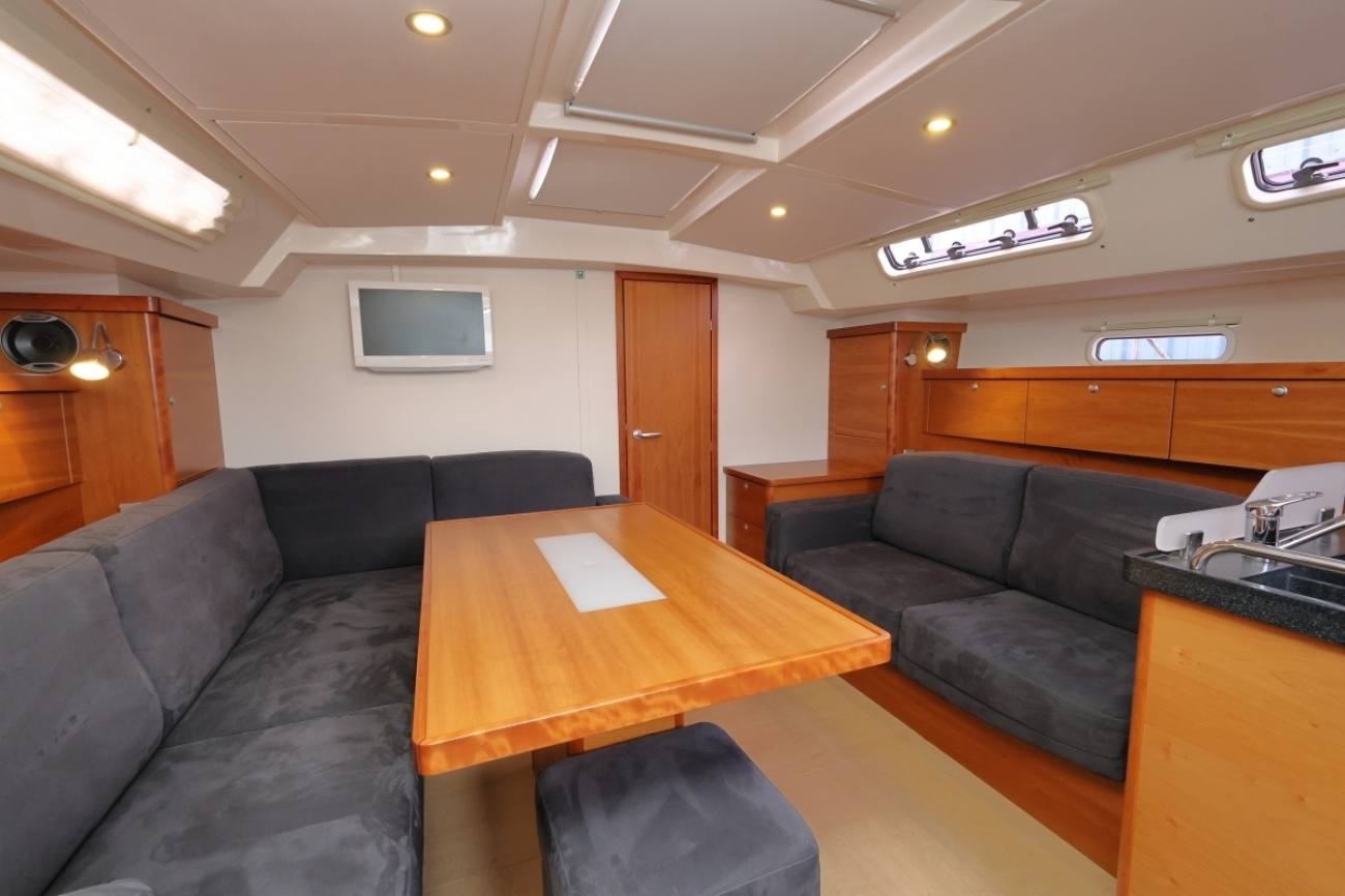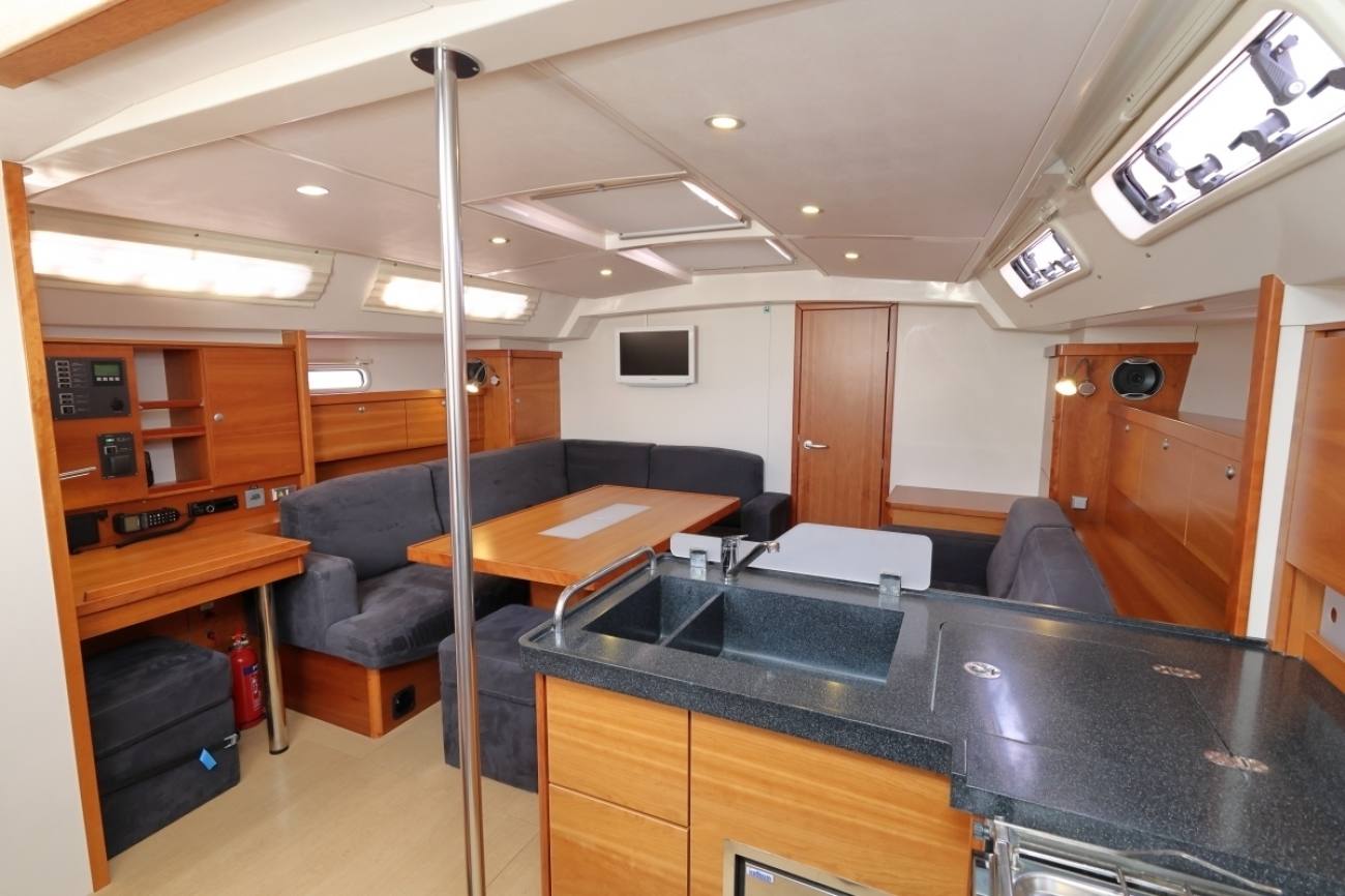 Skyhunter II being one of the last Hanse 470s built, enjoys all of the model improvements generated since conception in 2007. Chunky sofa style seating, solid moulded Corian galley surface and lots of other little touches make the interior feel very nice.