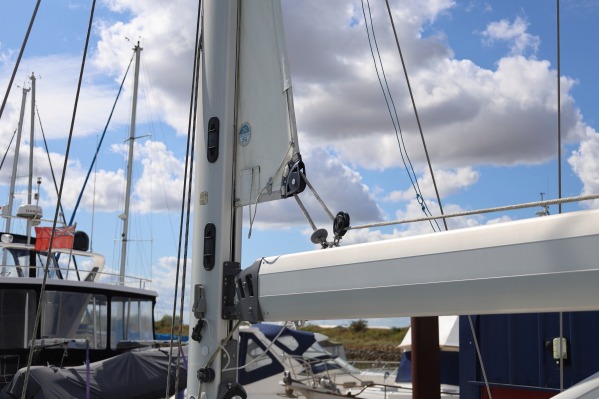Selden 3 spreader aluminium mast with in mast furling for main sail.