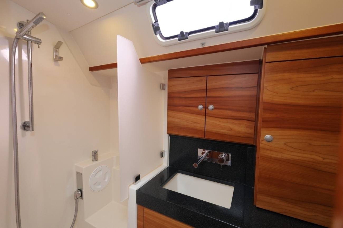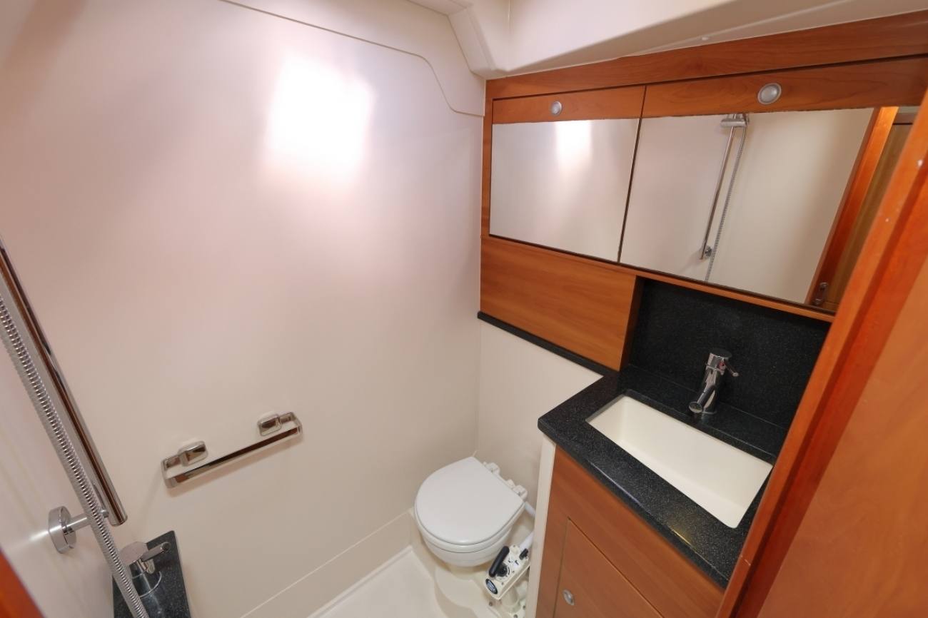 The upgraded cherry wood cabinetry, twinned with the light maple flooring creates a lovely light interior space to spend time cruising. The specification level is high with full teak decks, electric winches, bow thruster, a full navigation suite and plenty more.