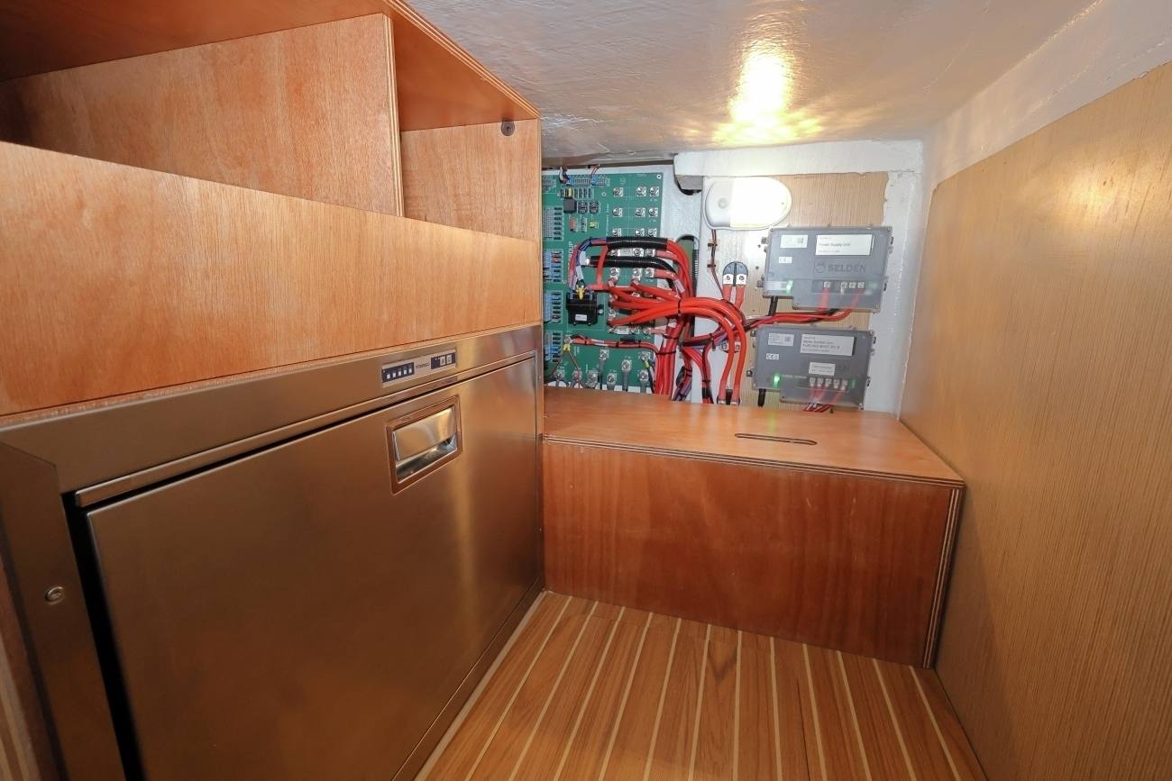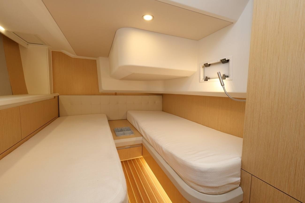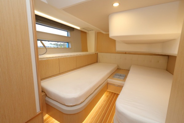 Sleeping accommodation is made up of a spacious forward cabin with large ensuite. The guest cabin is laid out with twin beds (which can be converted to a large double) and heads with shower across the corridor, doubling up as a day heads.