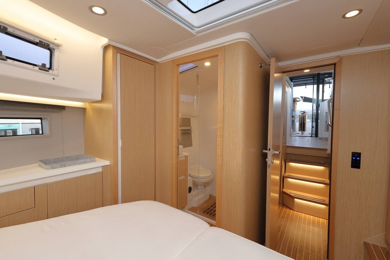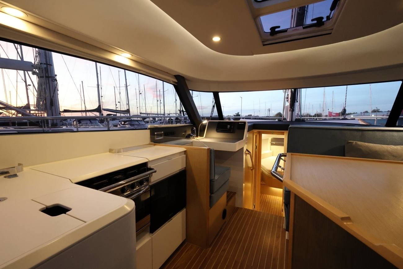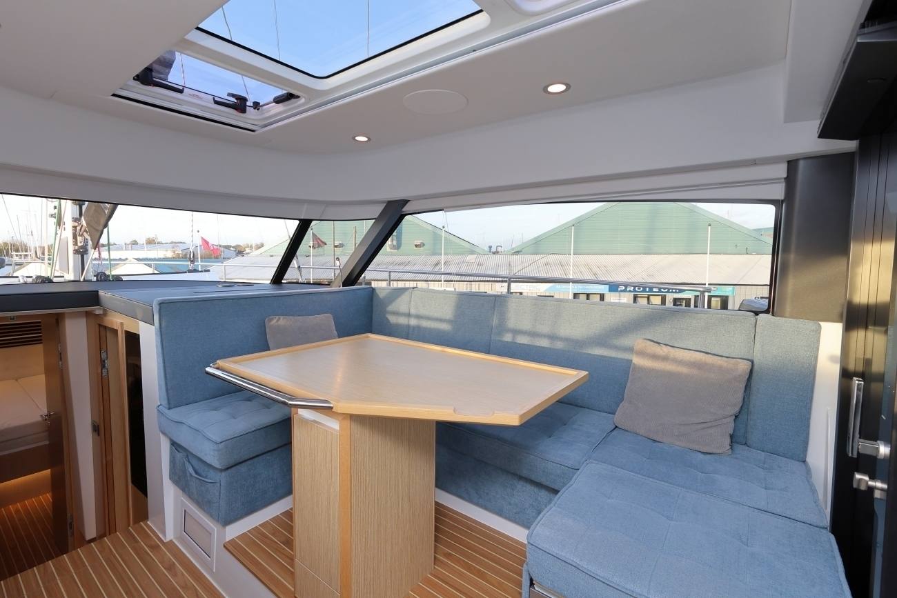 The interior of the award winning DS41 always feels bigger than her 41ft should allow and the benefits of the single level living concept are immediately appreciated as you enter the saloon on exactly the same level as the cockpit.