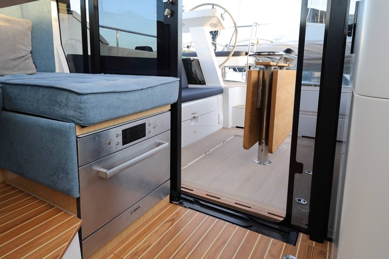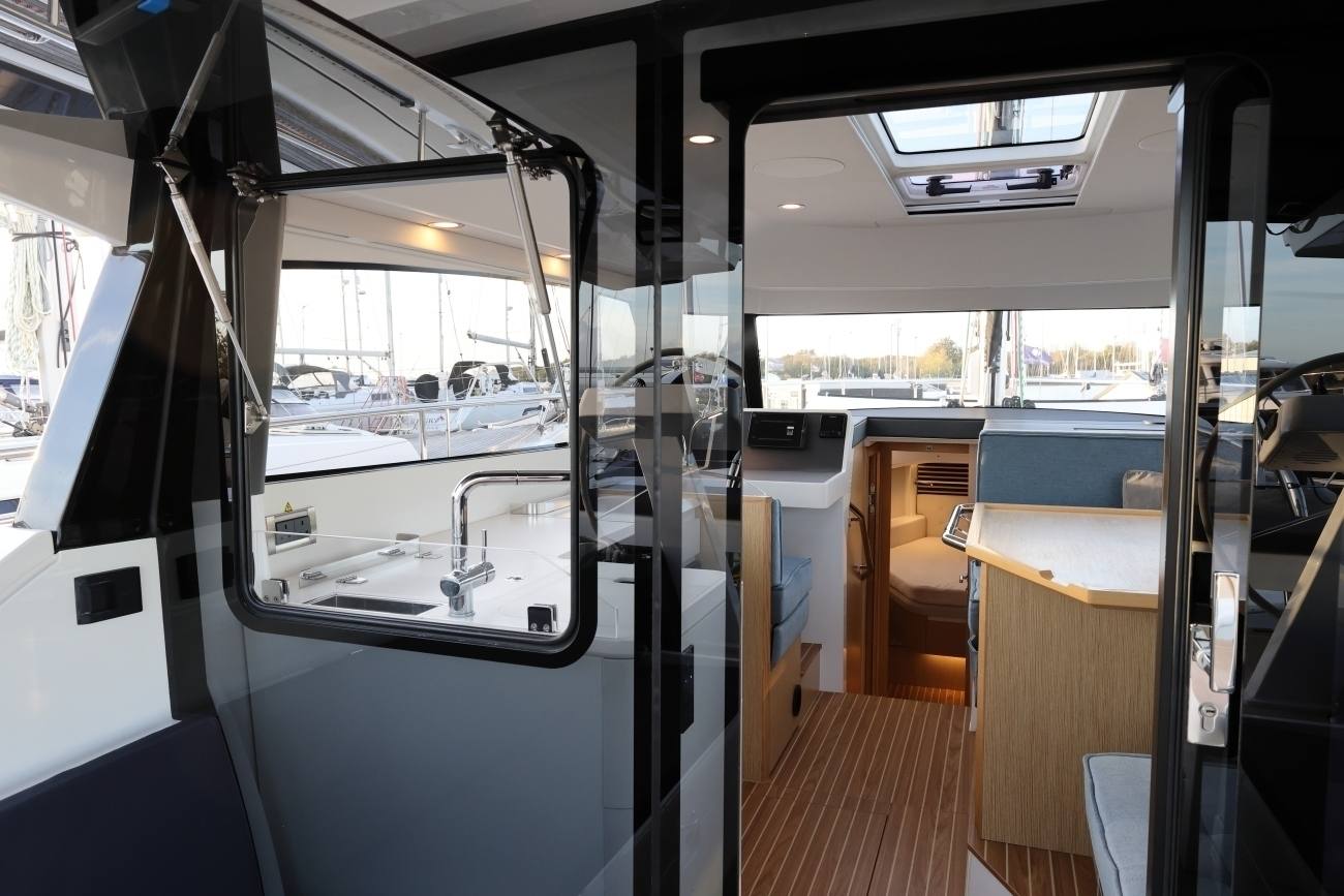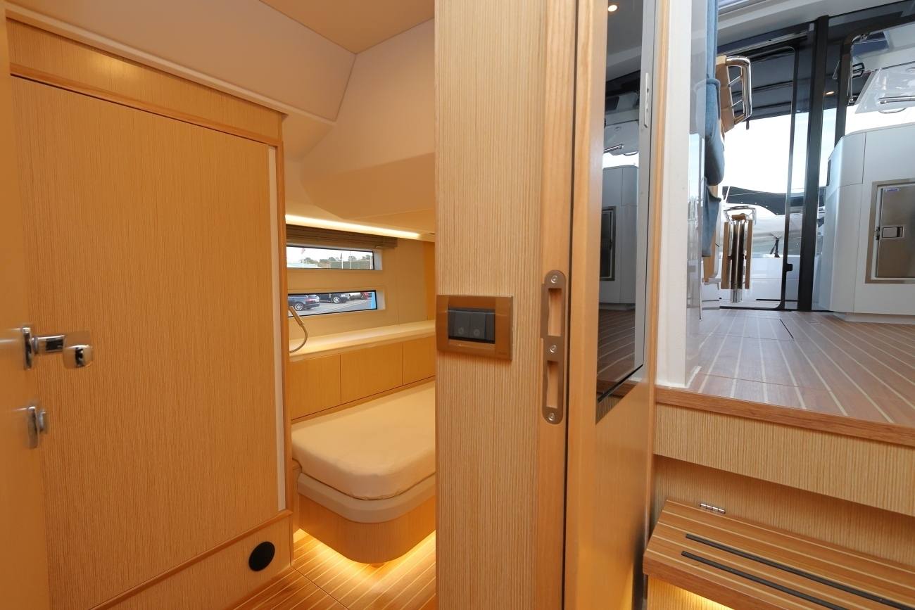 The interior of the award winning DS41 always feels bigger than her 41ft should allow and the benefits of the single level living concept are immediately appreciated as you enter the saloon on exactly the same level as the cockpit.