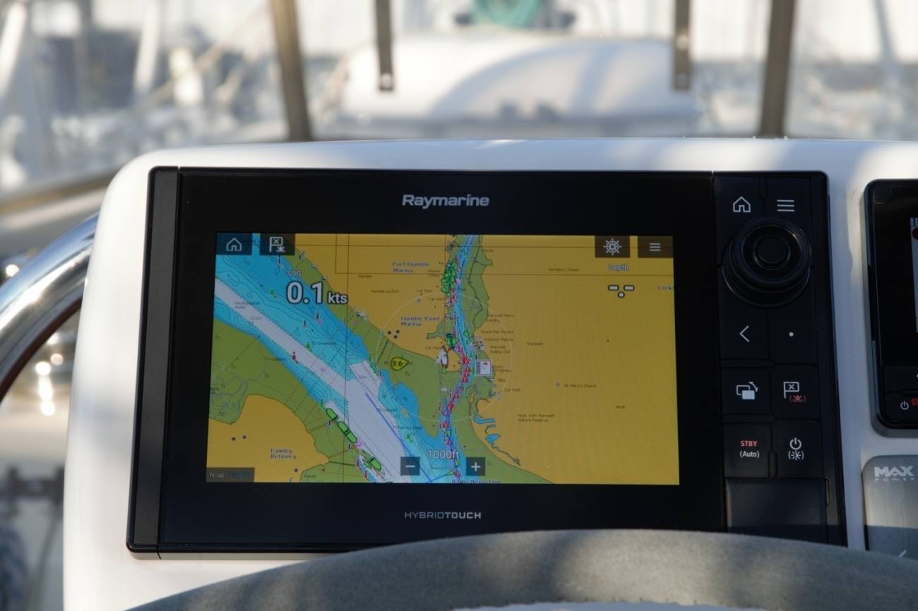 - 230v shore power is provided with standard 60A mains charger for batteries and 240V sockets in galley, fwd cabin, aft cabin, chart area and saloon - 15m shore power lead supplied
