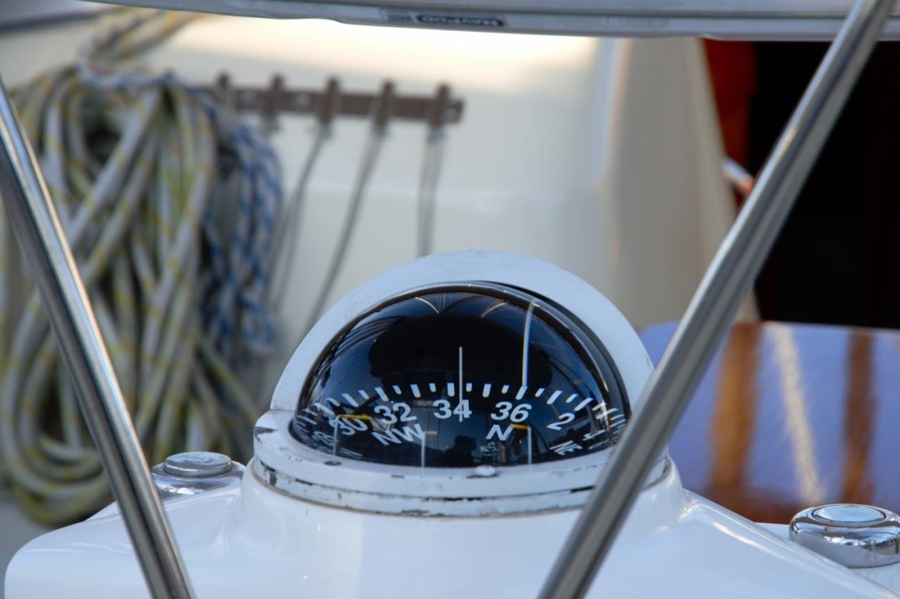 - Whitlock Cobra steering system with Reliant pedestal, binnacle compass and hide covered stainless wheel