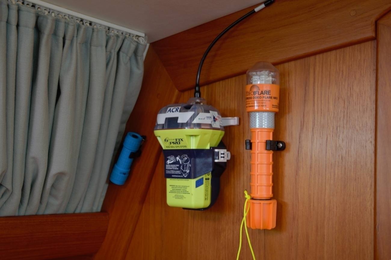 General note on safety equipment: Any safety equipment such as life rafts, Epirbs, fire extinguishers and flares etc. are usually personal to the current owner(s) and if being left on-board as part of the sale of a used vessel may require routine servicing, replacement, or changing to meet a new owner's specific needs.