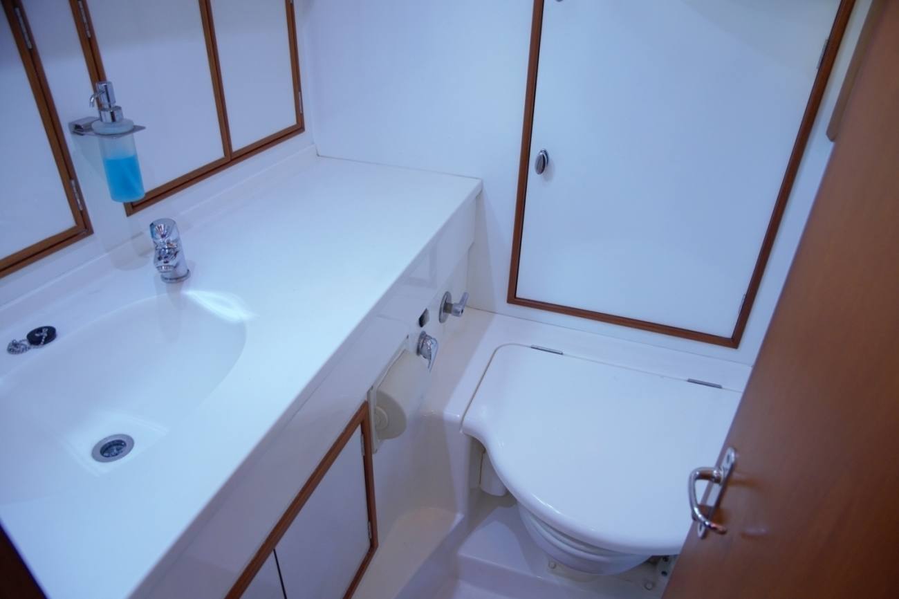 - Red/white lights to heads, red courtesy lights to chart area and galley