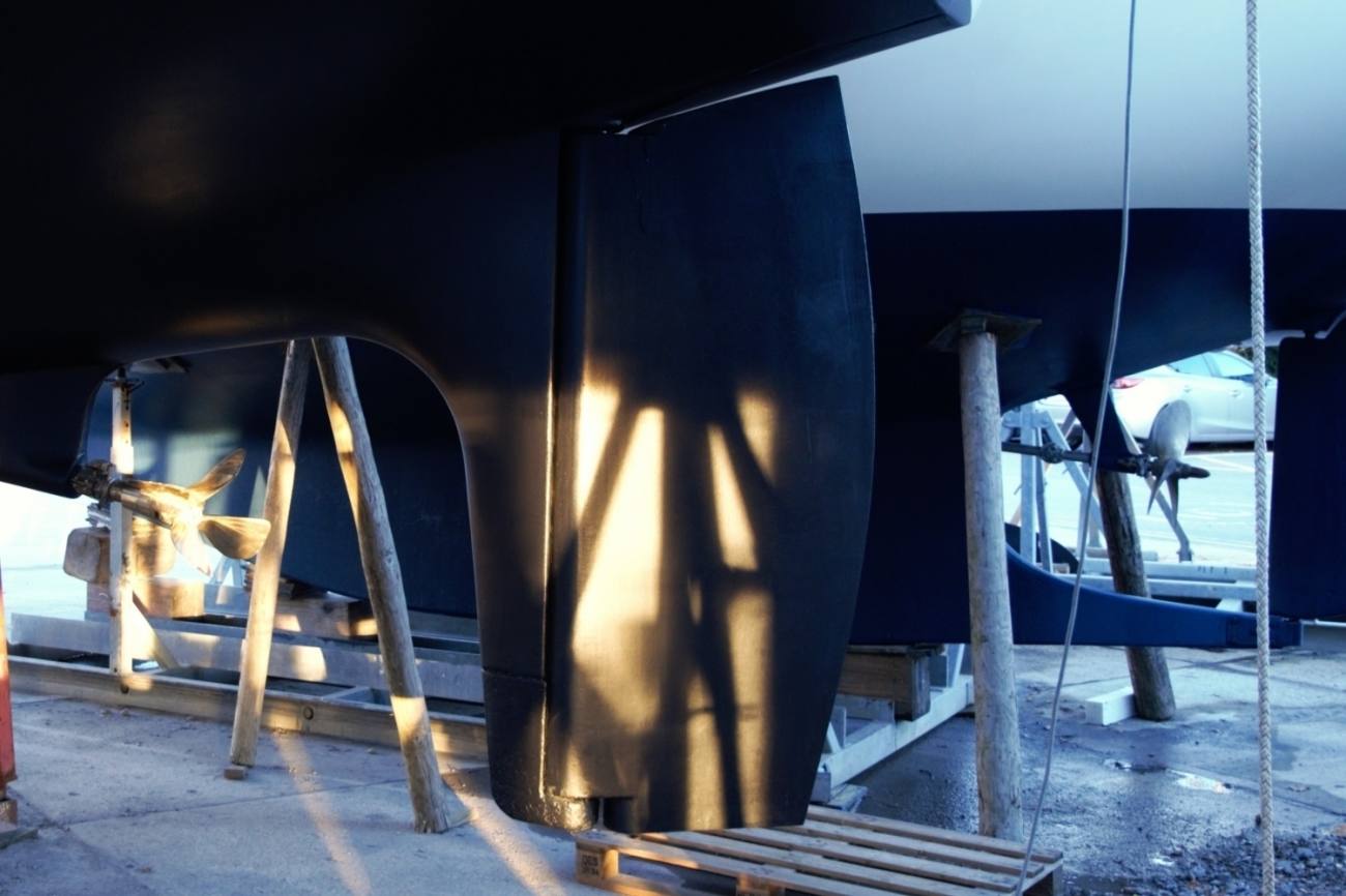 - The rudder is constructed using a 50mm stainless steel stock with large tangs encapsulated in GRP