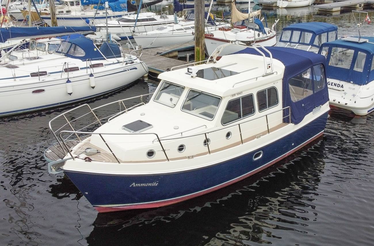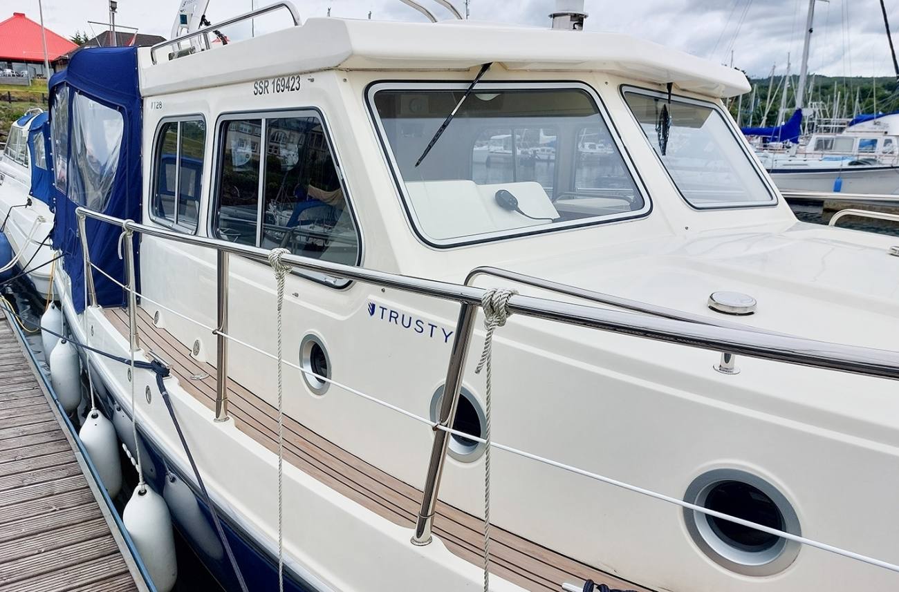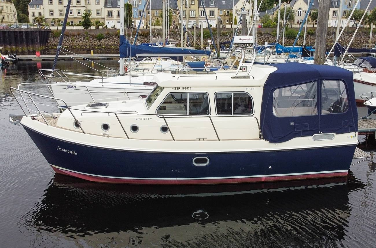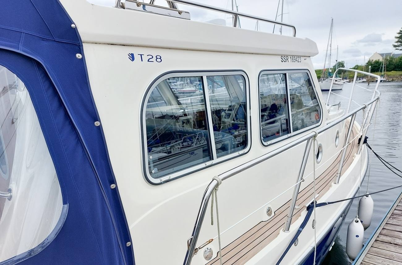 Trusty T28s are known for their solid seagoing performance and high quality build. This 2017 model is powered by the larger 220hp Yanmar diesel engine with only 156 hours on the clock. With a deep safe cockpit featuring walk through double doors into the comfortable saloon the T28 offers a good volume of living space for her size.