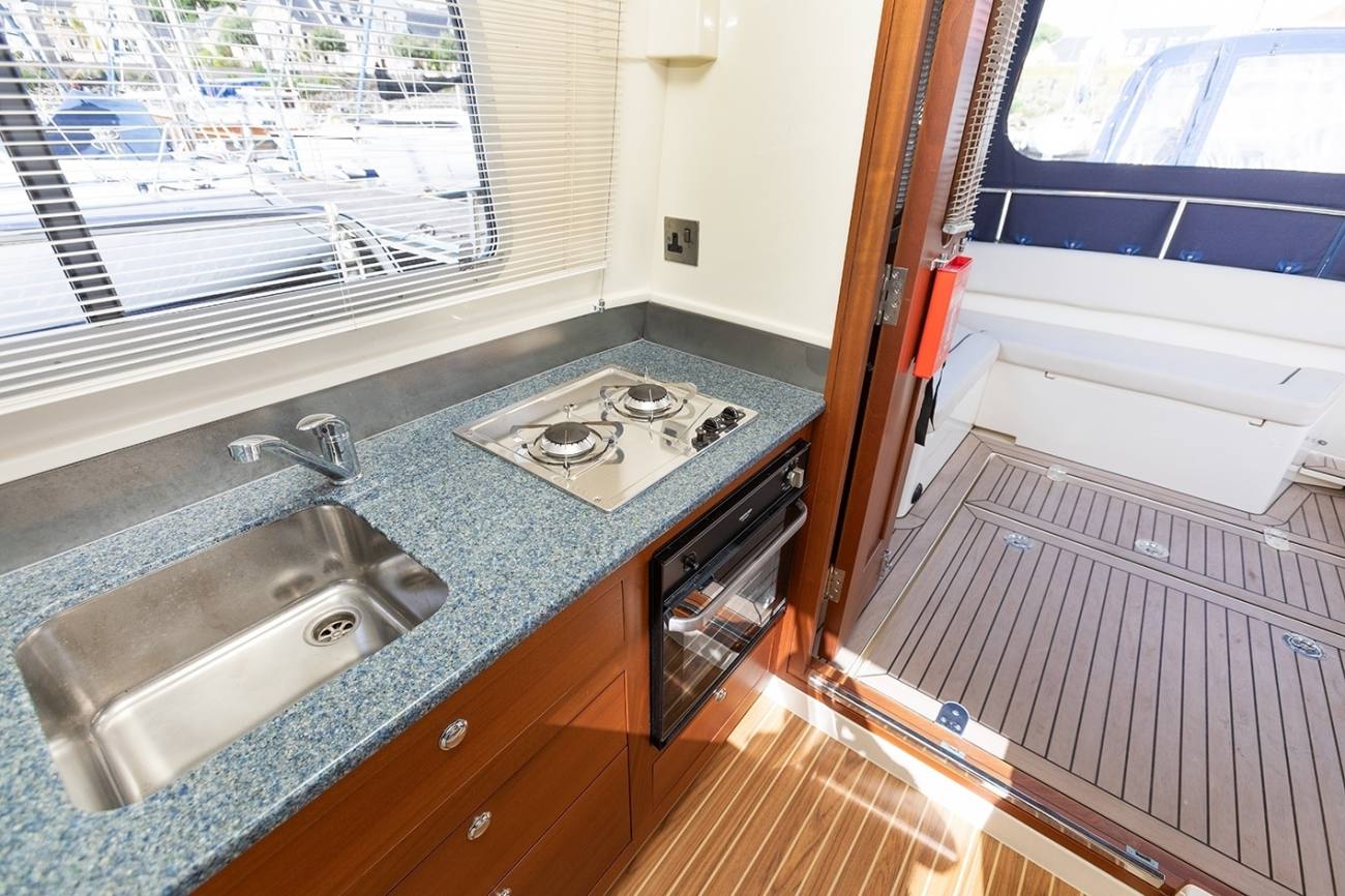 - Linear galley to starboard with corian worktop