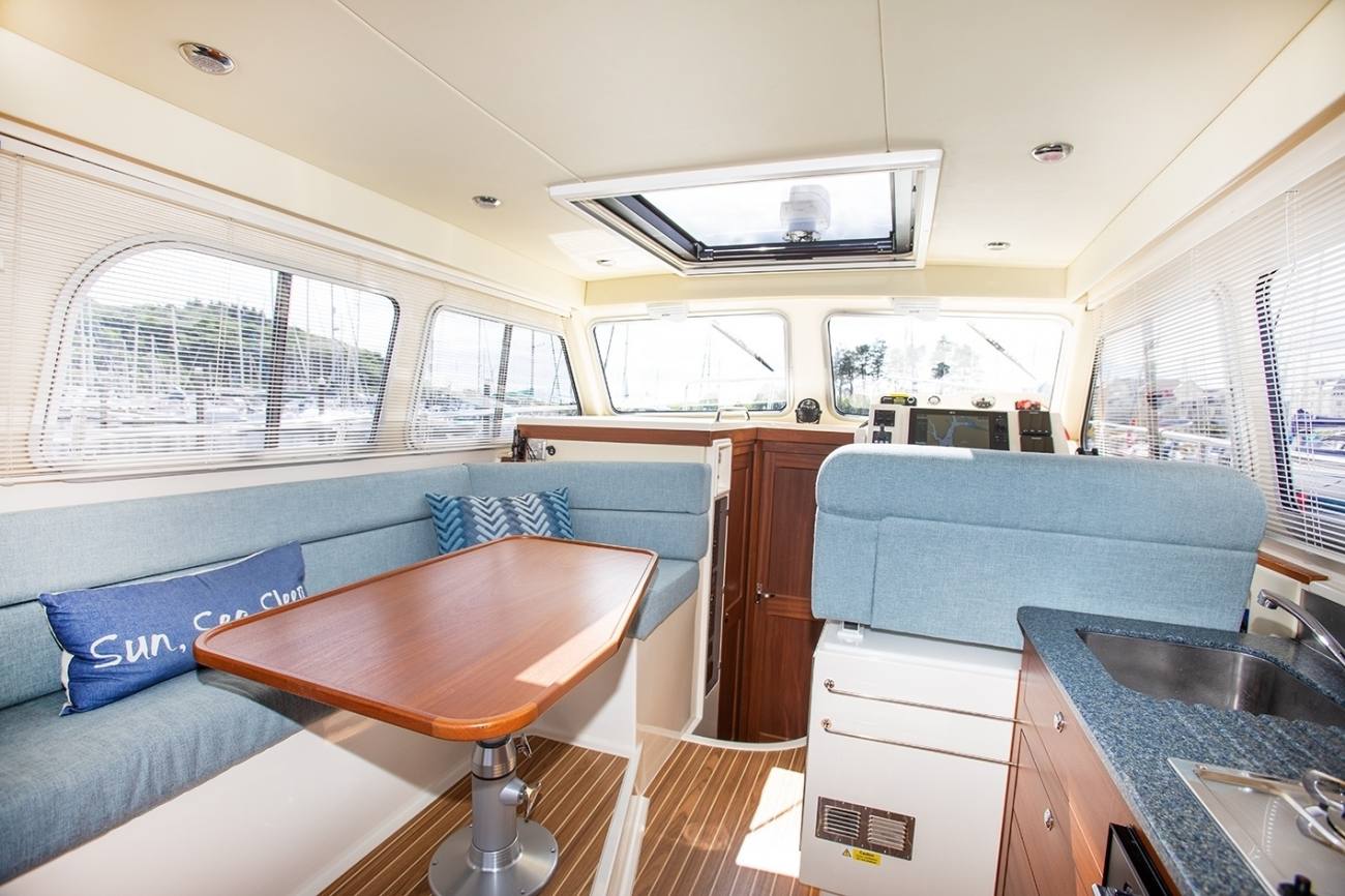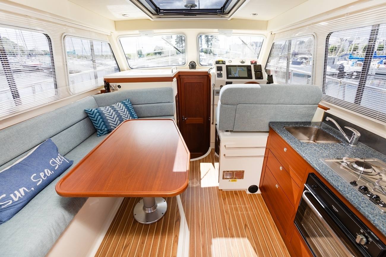 - L shaped dinette seating to port